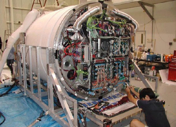 Historically, the various versions of the BESS instrument have consisted of large solenoidal thin-wall superconducting magnet, a time-of-flight system of scintillation counter hodoscopes, inner drift chambers (IDC), a jet-type drift particle-tracking chamber and an aerogel Cherenkov counter (which replaced outer drift chambers used in the first flights). All the components are arranged in a horizontal cylindrical configuration with the IDC and Jet chambers located inside the warm bore of the magnet.