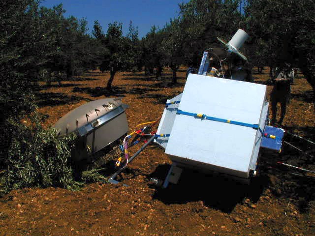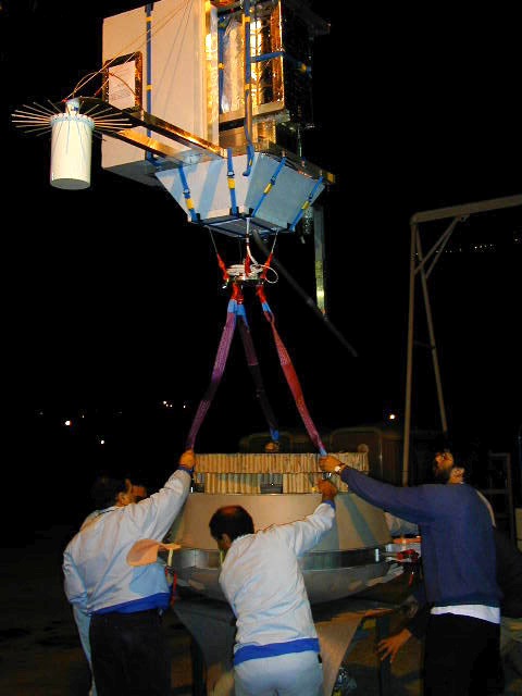 A telemetry box linked the probe to the parachute and balloon. It consisted of an aluminum tubular structure measuring 0.8 m × 0.8 m × 1.0 meters covered with expanded polyestyrene insulating panels and housed the radar transponder, the telecommand antenna, the GPS system and a VAISALA meteorological sonde. Most of the box volume was occupied by the ballast canister containing 100 kg of small lead spheres.