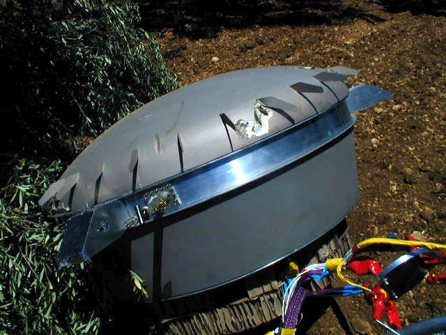 On the border of the main platform an external aluminium ring was fixed, where, external instruments and three box-like extensions were attached in a 120º configuration. These extensions were parts of the Separation Subsytem which in the real mission provided mechanical attachment and separation from the Orbiter. The lower part of the probe showed a set of vans, whose function was to induce a rotation rate similar to the one envisioned for the Titan descent.