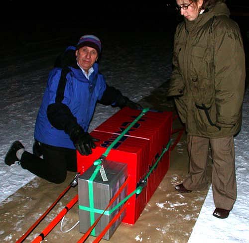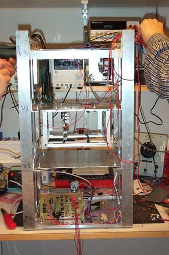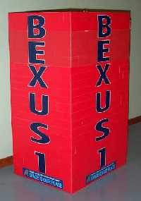 Most of the data to be collected during the balloon flight is used later in the courses. At left can be seen the gondola where the experiments are stored (click to enlarge).
