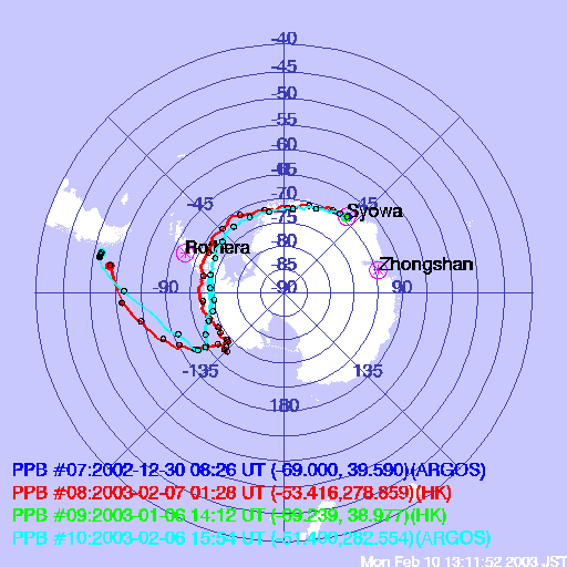 Originally the balloon would make a full circumnavegation of the antarctic plateau but changes in the wind directions take the balloon path over the Pacific Ocean. The flight path of this balloon is marked in the map above in red colour.