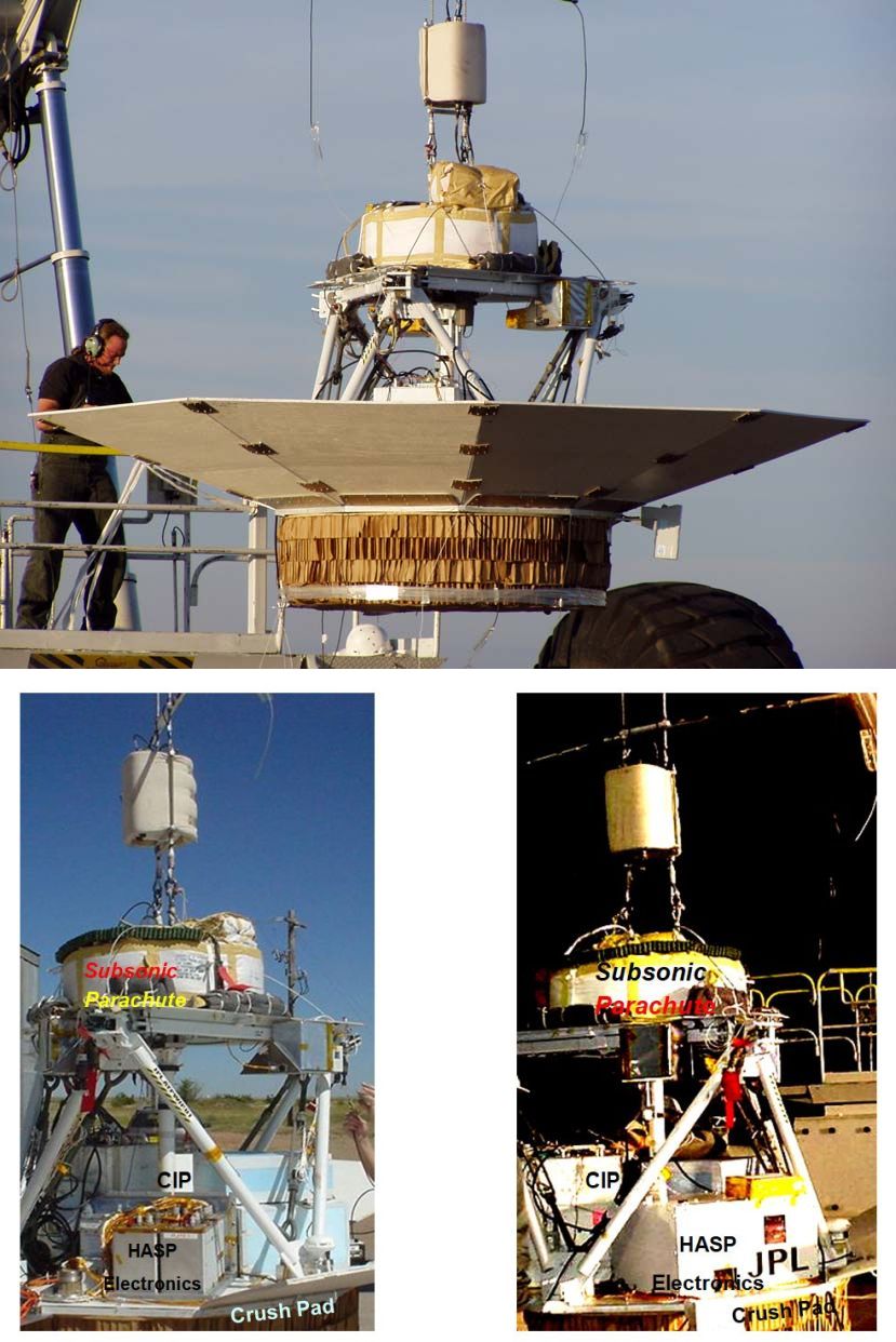 This test series was the first in a program of three test series designed to develop a new parachute system for Mars exploration as starting the new century, many of the lander missions under consideration included payloads that were five times more massive than those of previous missions. The program was carried out by the the Jet Propulsion laboratory, California Institute of Technology and Pioneer Aerospace with the support of NASA's National Scientific Balloon Facility.