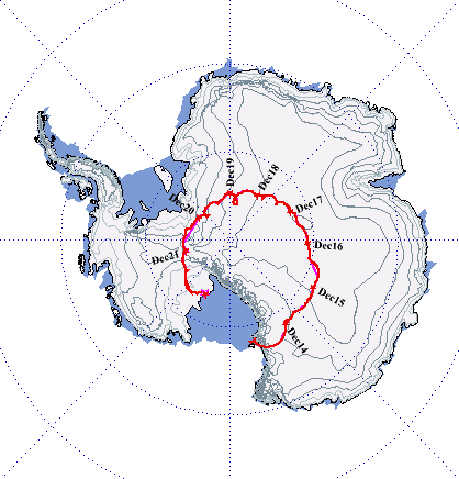 After reaching float altitude the balloon started a circular anti-clockwise path over the antarctic plateau.