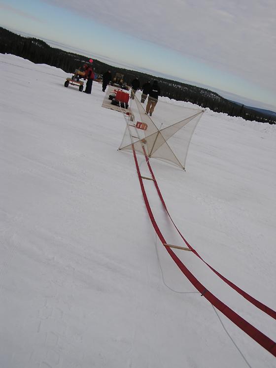 This was the third flight of the project and involved the participation of students at Kiruna Space and Environment Campus togheter with pupils from Hjalmar Lundboms school and the space high school, Rymdgymnasiet. At left can be seen the gondola where the experiments are stored (click to enlarge).