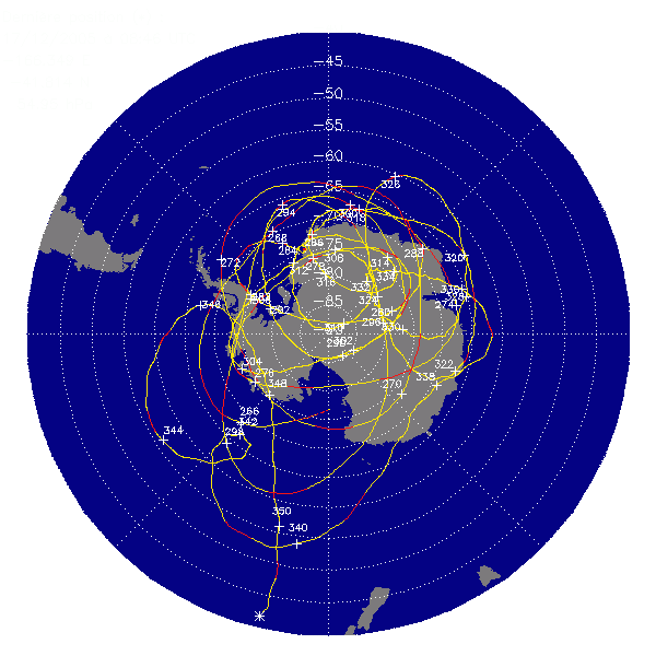After a flight of 87 days -as can be seen in the map at left (click to enlarge)- the balloon ended his journey on December 17th, due to his path crossed the flight domain limit established at 40º latitude south.
