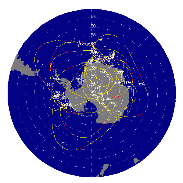 The last known position was over the Antarctic Ocean at coordinates 56.29º S - 10.61º E