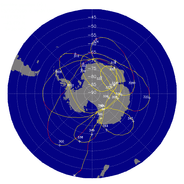 After a flight of 51 days -as can be seen in the map at left (click to enlarge)- the balloon ended his journey on December 15th, due to his path crossed the flight domain limit established at 40º latitude south.