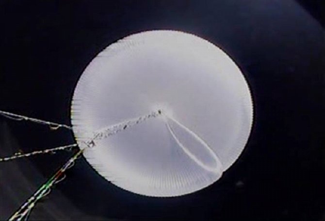 Just before termination, a video view was made of the balloon and the undeployed area (see third picture at right). Then, the balloon was turned over to CSBF flight operations for termination. The flight was successfully terminated and both the balloon and payload landed safely.