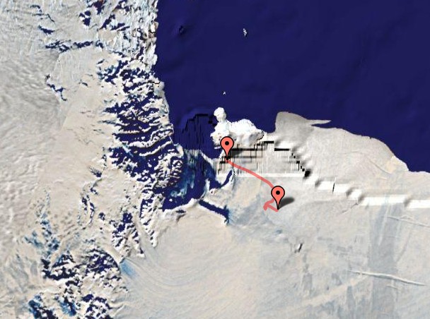 Landing site: 54 miles E-SE of Williams Field, Antarctica