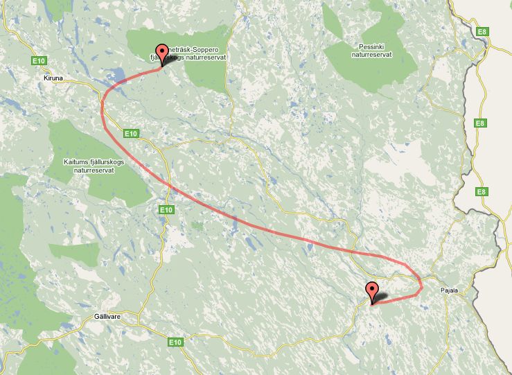 Landing site: East of Talinnen, in Norrbotten, Sweden