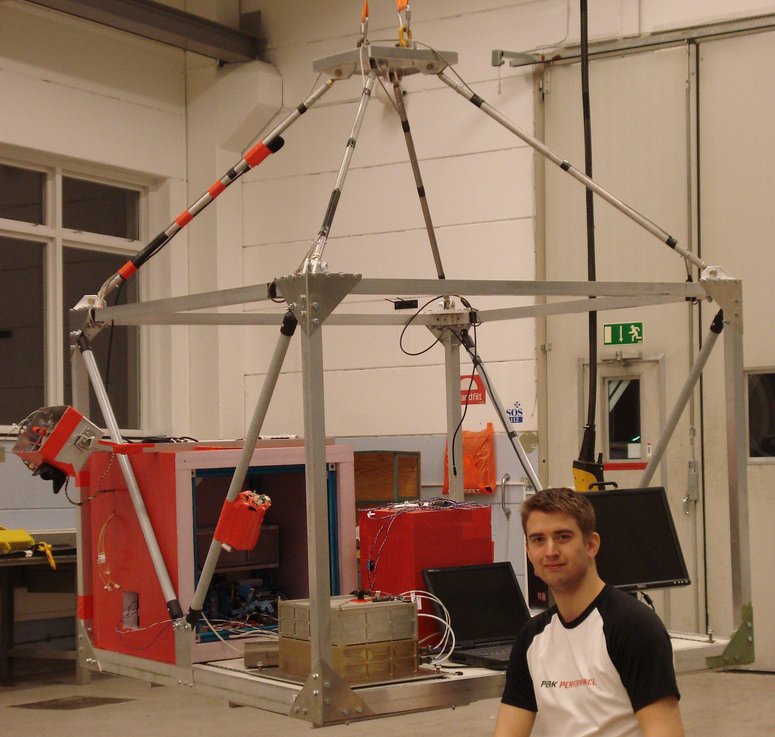 The main payload platform called E-GON its a light weight structure and was hanging in the end of the flight train. The BEXUS5 payload among with others such as Esrange's high speed data downlink system E-LINK were fastened on the floor of it.