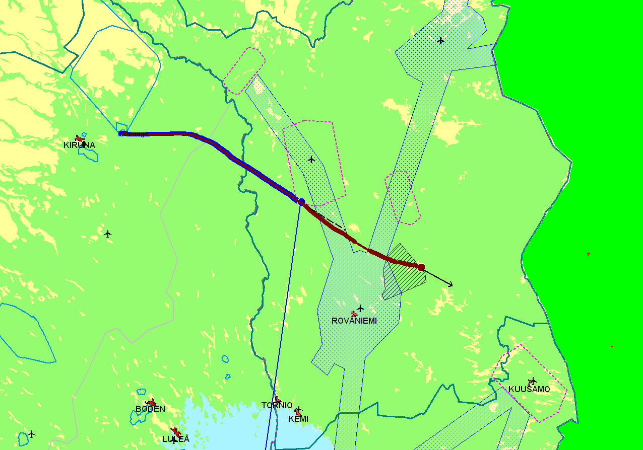 The flight ended a bit east of Rovaniemi.