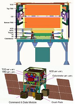CREAM has a larger effective geometry factor for protons and helium than any previous and current experiments being one of the most complex instruments ever flown in a balloon. Is comprised of several major detector sub-systems as can be seen in the schematic view at left (click to enlarge). Due to the "modular" nature of CREAM (of which two instruments suites were built to be flown on alternate years) it's configuration can be changed from one mission to another.