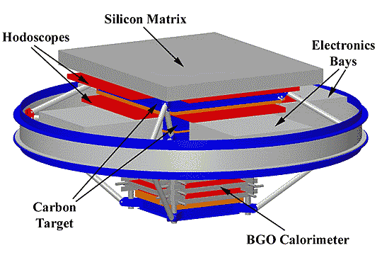 To achieve its scientific objectives, the ATIC experiment must be capable of measuring the incident cosmic ray charge and energy over an energy range of 50 GeV to >100 TeV. A schematic of the instrument, can be seen at left (Click to enlarge).