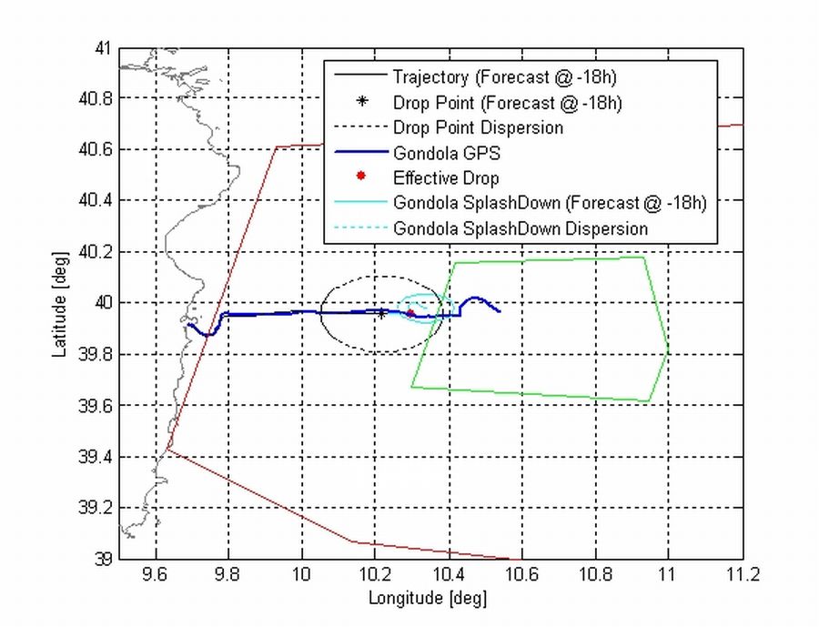 The balloon was launched by semy-dinamic method on 24 February 2007 at 8:30 a.m., and after a nominal ascent phase with eastward displacement that lasted 98 minutes, the vehicle and his payload reached float altitude of 20.2km. Several minutes later at 10:08 am the FTB was released when the balloon was located at Latitude 39.95108 and Longitude 10.29903, within a huge isolated area restricted to aerial and maritime traffic controlled by Italian air force test range in Salto di Quirra (PISQ). The mission ended at 10:30 a.m. with the splash-down of the space vehicle at coordinates 39.94 Long.10.37 and the termination of the balloon and the separation of the gondola. Then started the last phase of the mission under charge of the ship "Tavolara" of the Italian Navy to recover from the sea the gondola, the balloon and the vehicle. The recovery operations ended at 22.30 p.m. lasting near 12 hours.