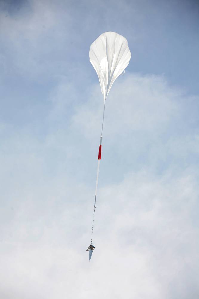 The entire system of the FTB is constituted of a carrier subsystem (the stratospheric balloon) whose function is to drive the vehicle to the desired altitude (thus acting as a virtual "first stage" of propulsion), the transporting gondola and the vehicle itself. A close view of the gondola and the vehicle can be seen in the image at left (click to enlarge).