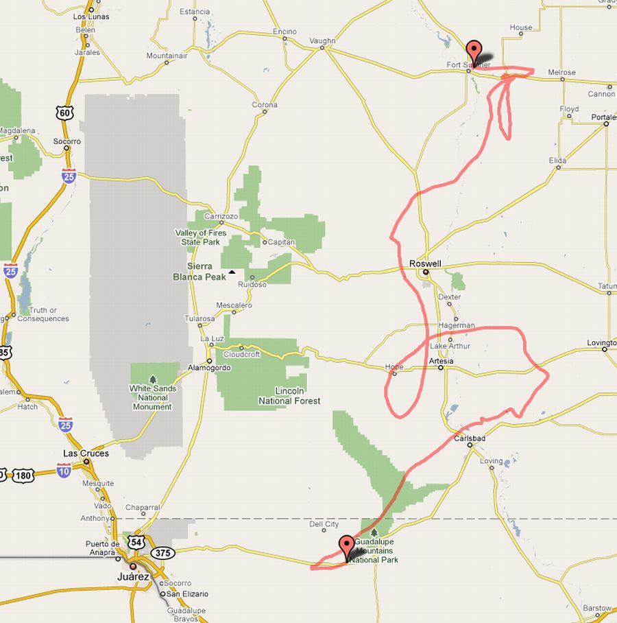 Landing site: Between Carlsbad and El Paso, Texas, USA