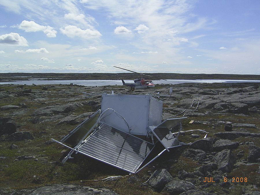 Termination commands were sent to the balloon from the recovery aircraft at 00:26 utc on 3 July 2008. The descent on parachute took about 44 min and was closelly observed by the termination team until 1:10 utc when the gondola hit the ground in a point located 135 km east of Umingmaktok, Canada. The gondola landed on dry soil from where it was recovered successfully.