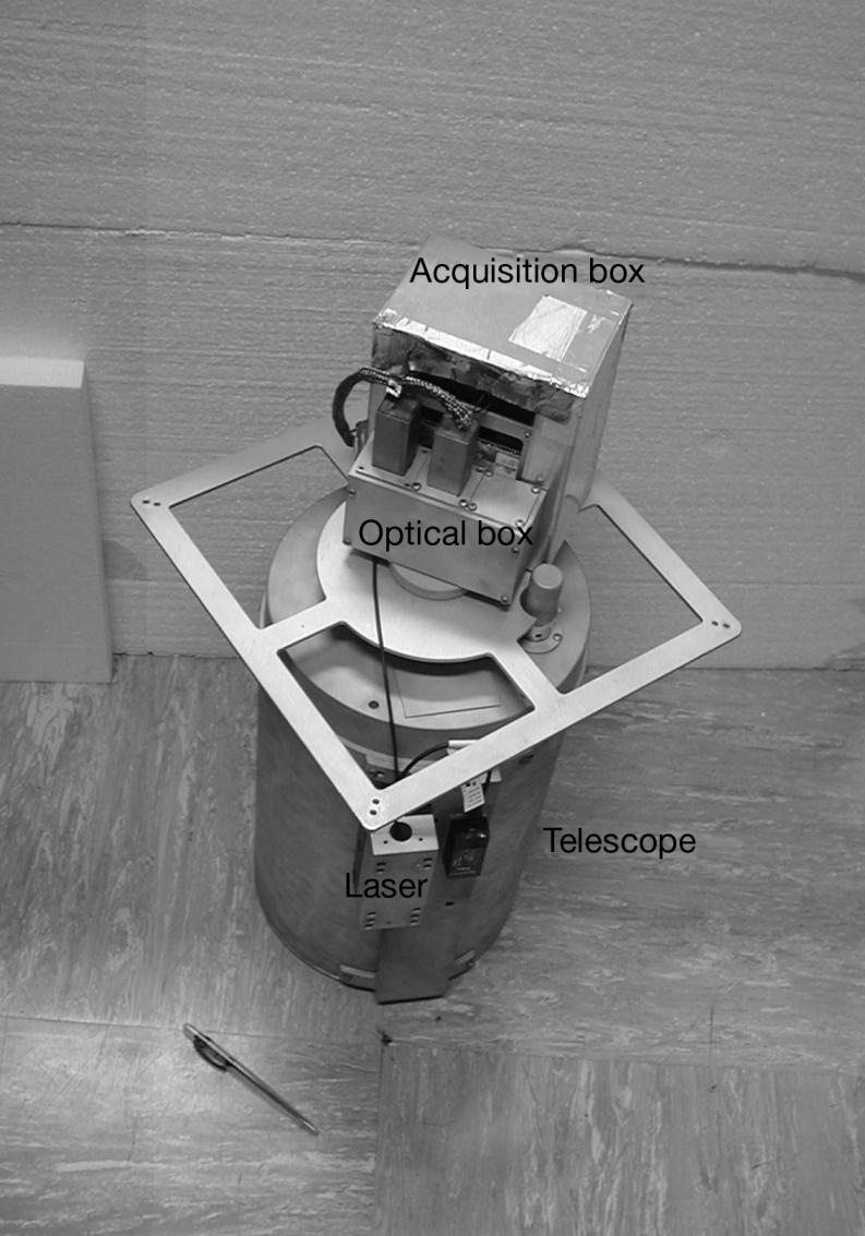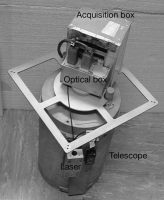 It's light source is a solid state laser of 1.5 µJoules of power that operates at a repetition rate of 1 kHz and at a wavelength of 532 nm. In case of long duration balloons a second spare laser is available to doubling system lifetime. The receiver is composed by a Newtonian modified reflector telescope with a parabolic primary mirror Aluminum coated of 200 mm with a focal length of 300mm. The detector is composed of two Hamamatsu 5783p photo-multipliers modules used to collect the backscattered light and to divide it according to its wavelength. The sensors are used in photon counting mode to increase the Signal to Noise Ratio (SNR). The signal coming from photon-multipliers is sent to an electronic device that eliminates low amplitude events caused by thermal background, and reshapes the other pulses to a TTL level (discriminator). The DSP receives the signal and uses its memory as a shift register for the profile. In order to avoid multiple counts of a single event, a synchronization between photon pulse and DSP trigger is performed at this stage. DSP sums the whole profile bin by bin over an interval set by the user (normally 30 s). After the integration period the summed profile is sent to the PC where is stored on a solid state memory (2 MB). The use of a 40 MHz DSP allows to average profiles at the laser firing frequency (1.1 kHz).
