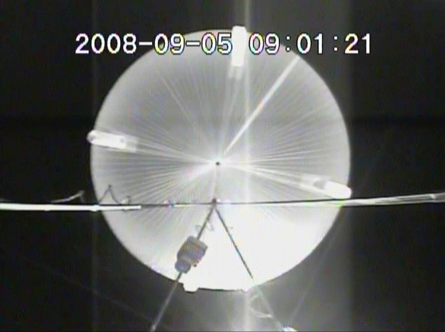 The 300,000 m3 balloon with a total lift of 1.2 ton was successfully launched at 6:19 jst on 5 September 2008 using the semi-dynamic method based on the sliding launcher platform.