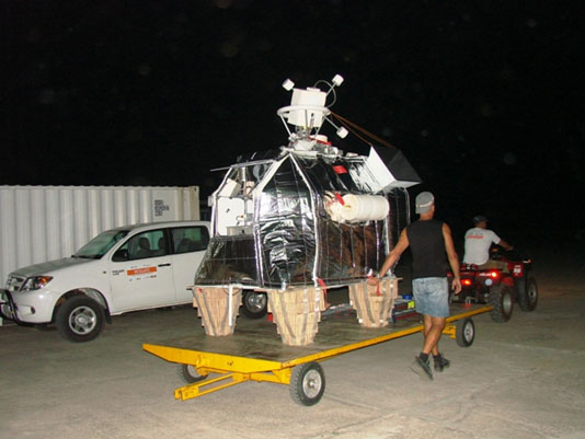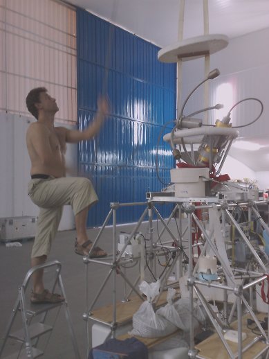 In addition it is possible to accomodate on the gondola another instrument of the class 30-50 kg wich can benefit from their good pointing capabilities. In this flight also was part of the scientific payload onboard the gondola the DOAS (Differential Optical Absorption Spectroscopy) consisting of 2 light intake telescopes for simultaneous Nadir and scanning Limb observations (the latter being mounted on an automated elevation scanner). The incoming light is conducted into two Ocean Optics USB-2000 spectrometers which are mounted into an evacuated and thermo-stated housing and controlled by a single board computer for data handling and storage. The instrument was created to help in the validation of the SCHIAMACHY instrument onboard ENVISAT.