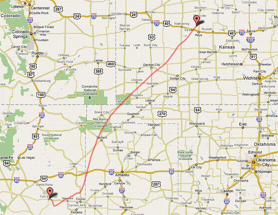 Landing site: 36.5 nautic miles NE of Hays, Kansas, US