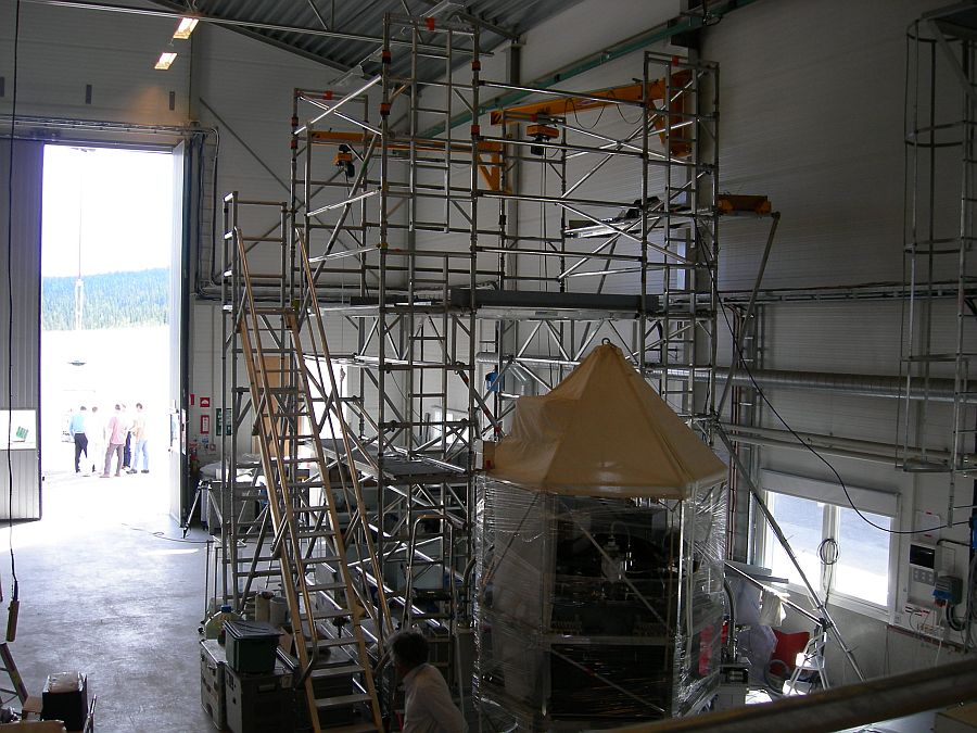The mast is deployed during the flight to have the first measurements at the tropopause. Around the instrument, a rigid metal frame encompasses it, in order to have a instrument-safe landing.