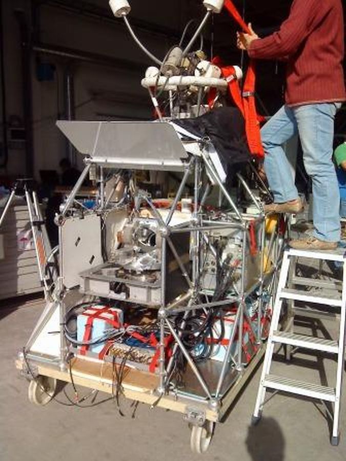 The first was DOAS (Differential Optical Absorption Spectroscopy) consisting of 2 light intake telescopes for simultaneous Nadir and scanning Limb observations (the latter being mounted on an automated elevation scanner). The incoming light is conducted into two Ocean Optics USB-2000 spectrometers which are mounted into an evacuated and thermo-stated housing and controlled by a single board computer for data handling and storage. The instrument was created to help in the validation of the SCHIAMACHY instrument onboard ENVISAT.