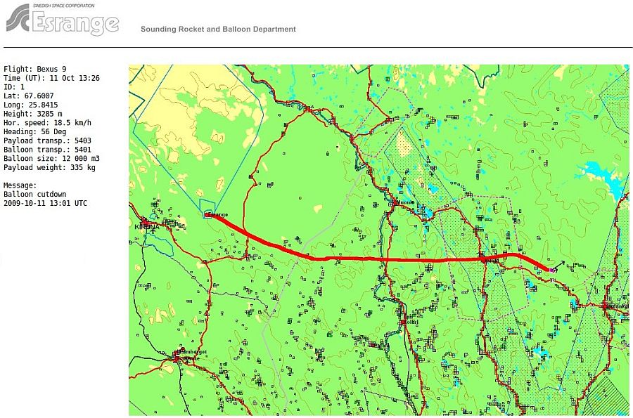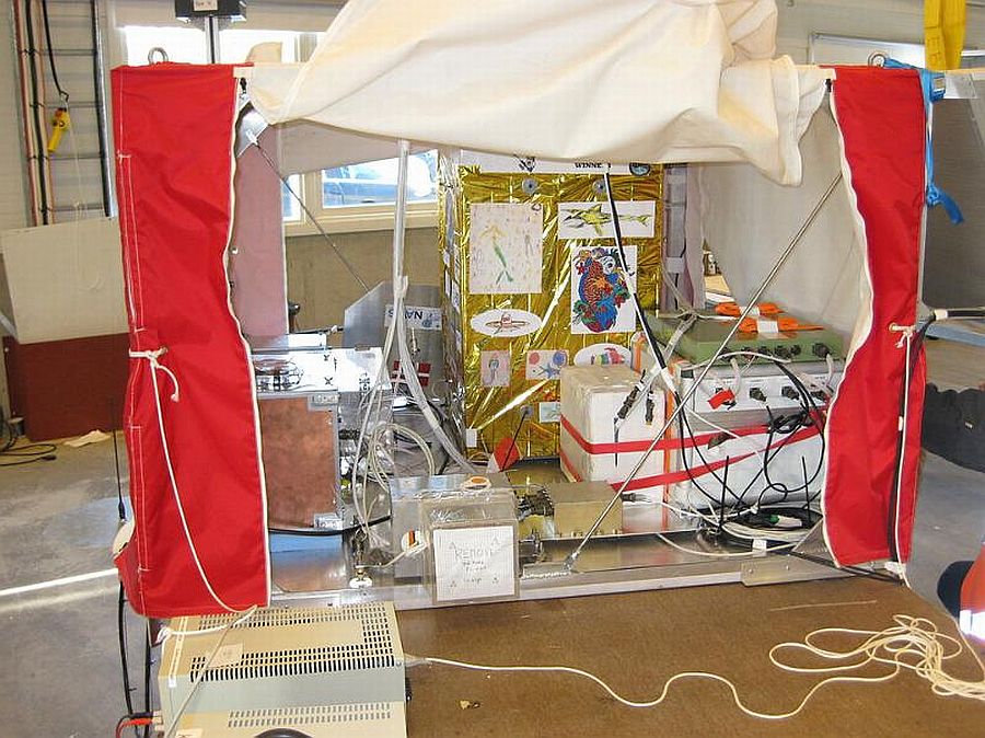 Each year, two balloons are launched from the European Space Range (ESRANGE) base near Kiruna, Sweden each carrying several experiments assembled on a medium-sized gondola (1.16 m x 1.16 m x 0.84 m). The total lifted-mass is approximately 300kg on each flight. With each payload weighing between 30 and 112 kg that means that 4 student experiments can be accomodated per gondola.