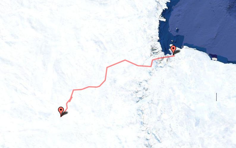Landing site: 405 miles SW of McMurdo, Antarctica