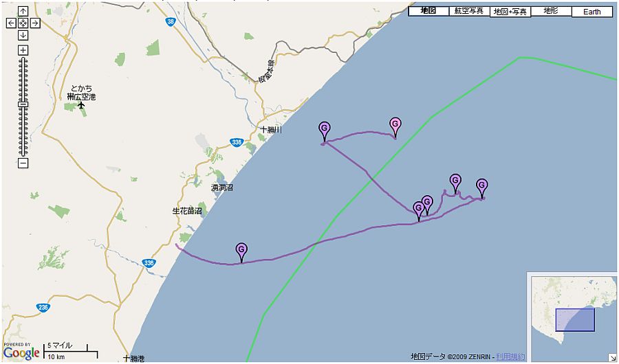 Landing site: Over the sea, 30 kms east of Tokachi, Japan