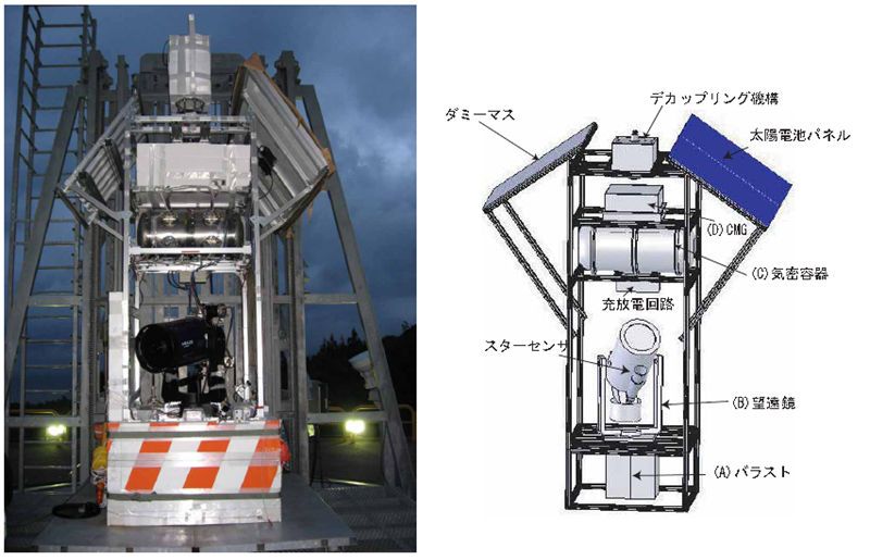 The azimuthal angle is detected by a sun-sensor. A PC processes the sensor output to control DC motors used in the decoupling mechanism and CMGs with an accuracy in azimuthal attitude of about 0.5 deg. The two-axis gimbal mount of the telescope are controlled by the same PC, guiding an object within a field-of-view of a guide telescope. The field-of-view of the telescope covers elevation angles from 0 deg to 70 deg. Residual tracking error is detected by a position sensitive photomultiplier tube and corrected by the two-axis moving mirror installed in an optical system.