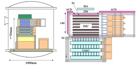In the scheme at left can be seen the distribution of the elements that composed the bCALET-2 instrument which is a 1/12 scaled down version of the full sized experiment for the ISS (click to enlarge).