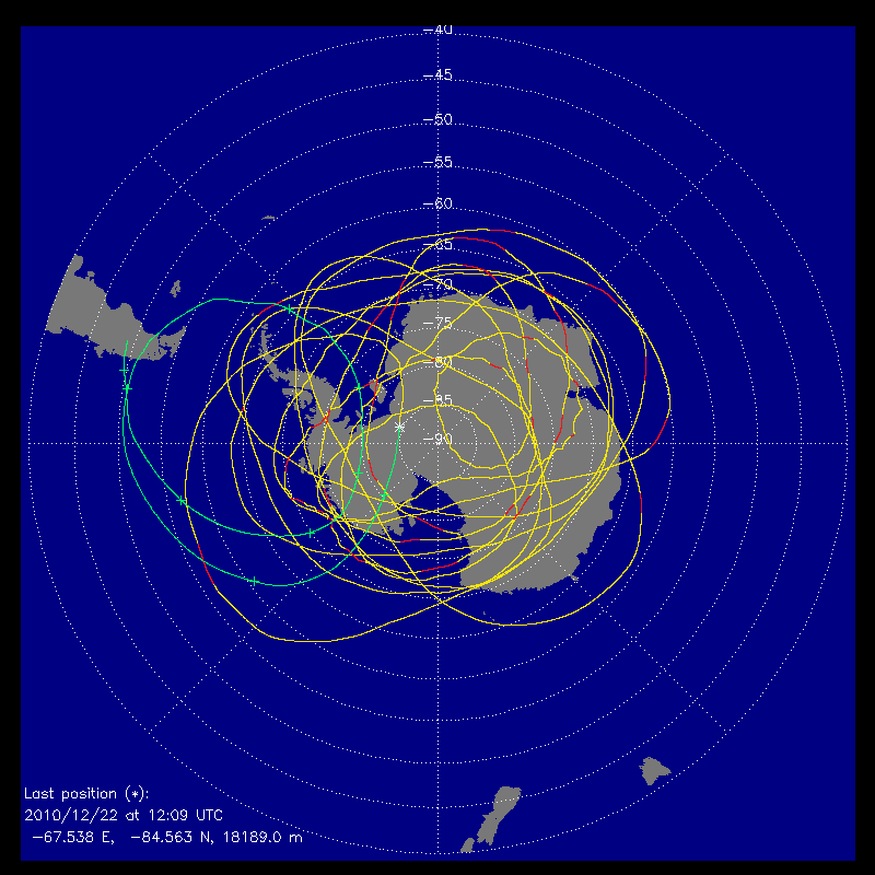 This flight was part of CONCORDIASI a multidisciplinary effort jointly operated by France and the United States to study the lower stratosphere and troposphere above Antarctica as well as the land surface of the Antarctic continent carried out in 2010. An constellation of balloons provided a unique set of measurements covering both volume and time. The balloons drifted for several months on isopycnic surfaces in the lowermost stratosphere around 18 km, circling over Antarctica in the winter vortex.