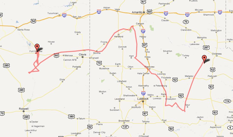 Landing site: N of Paducah, Texas, US
