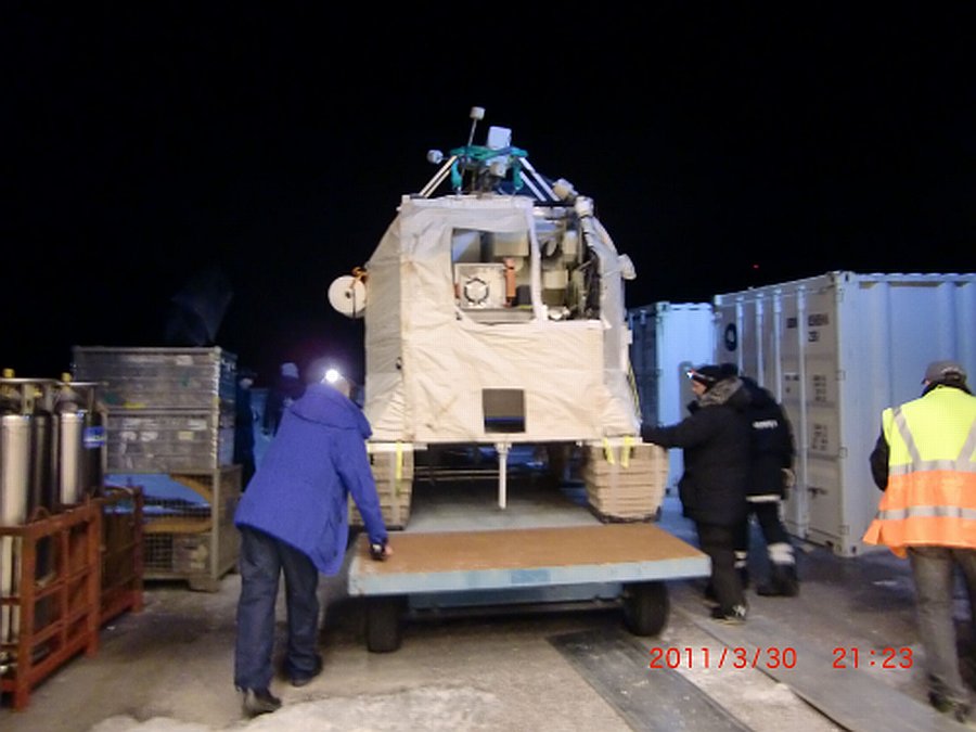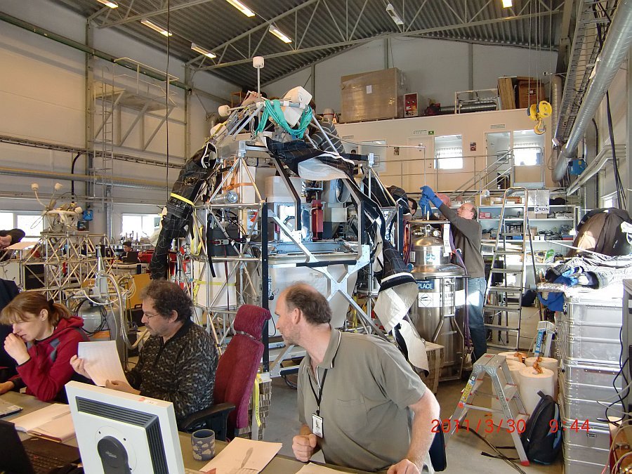 The gondola is a frame construction, developed by the Geneva Observatory, combining high stability and safety with relatively low weight and easy servicing.