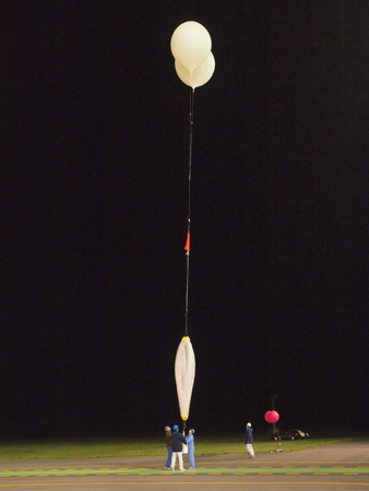 The balloon was launched from the Taiki Aerospace Research Field, in the Hokkaido island, on June 1st., 2011 at 23:01 local time. For the launch, two weather balloons were attached to the superpressure one and towed it to float altitude.