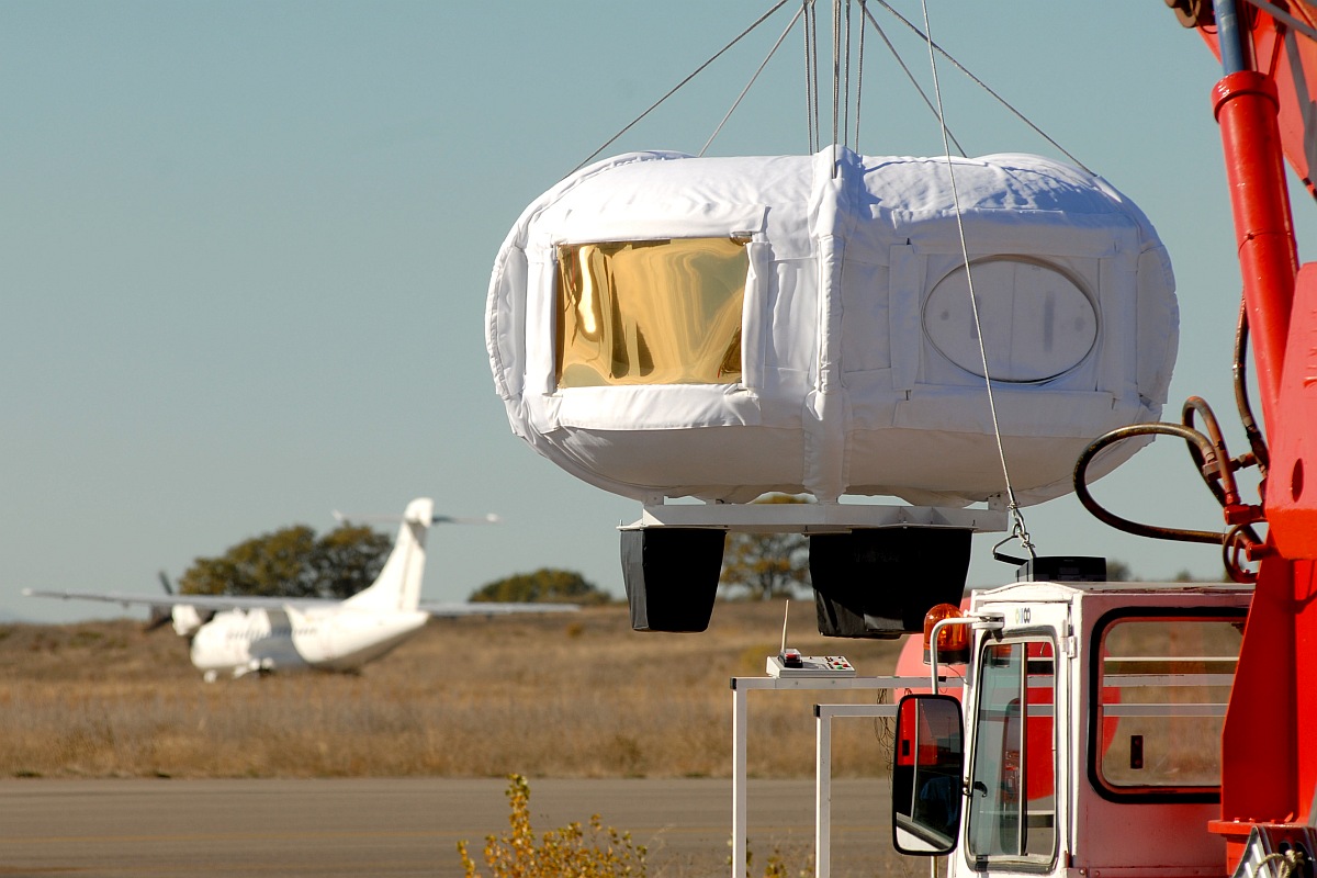 The capsule mockup used in this test denominated microbloon 2.0, was a 2 meters diameter pressurized pod designed by zero2infinity as a scaled model of the full bloon pod that will carry 4 passengers and 2 pilots to 36km, providing near space conditions for over 2 hours.