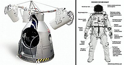 The chair in which the pilot sits, has a sliding mechanism that allows it to move forward to get the lower half of his body out from the pressure sphere at the time of the jump. At the sides of the door there are two handrails that allows him to stand on the edge of the capsule, while maintaining stability.