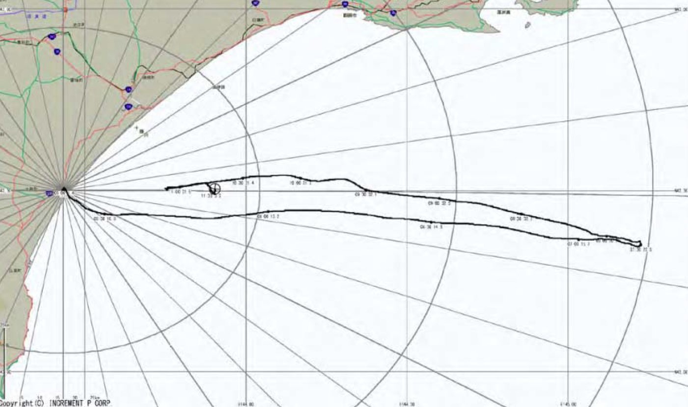 Landing site: In the Pacific Ocean, 40 km E of Taiki, Japan