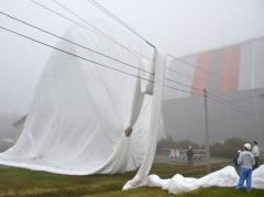 At the moment of the release the balloon -of a volume of 300.000 m3- failed, forcing to abort the launch. By that moment, the balloon had been released and once aborted it landed inside the terrain of the launch base. A part of the envelope however, fell over the wires of a power transmission line located there. According to the press release issued by Jaxa after the failed launch, the balloon was promptly removed by workers of the Hokkaido Electric Power Company Inc.