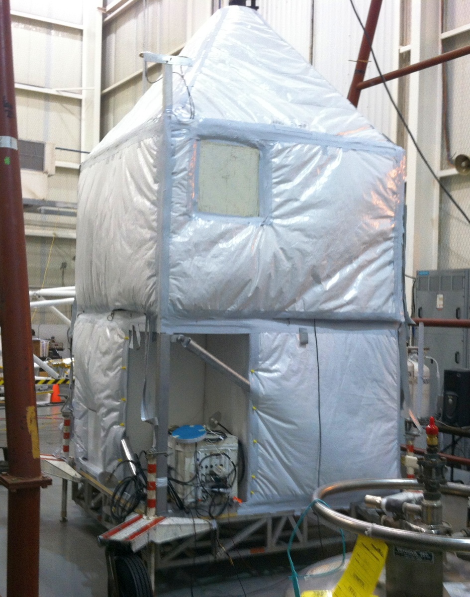 The instruments are mounted in two specially built gondolas measuring 6 ft. by 6 ft. on their sides by 18 ft height and another half the height. At left we can see an image of one of them. To perform the measurements of atmospheric trace species is used the technique of solar occultation, in which the direct Sun is viewed through the atmospheric limb thus providing long atmospheric paths and hence high sensitivity to trace species. The type and number of the instruments may vary from flight to flight but range from photometers and radiometers to spectrometers and interferometers.