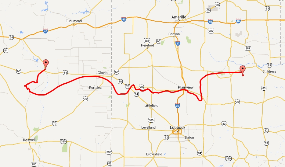Landing site: W of Childress, Texas, US