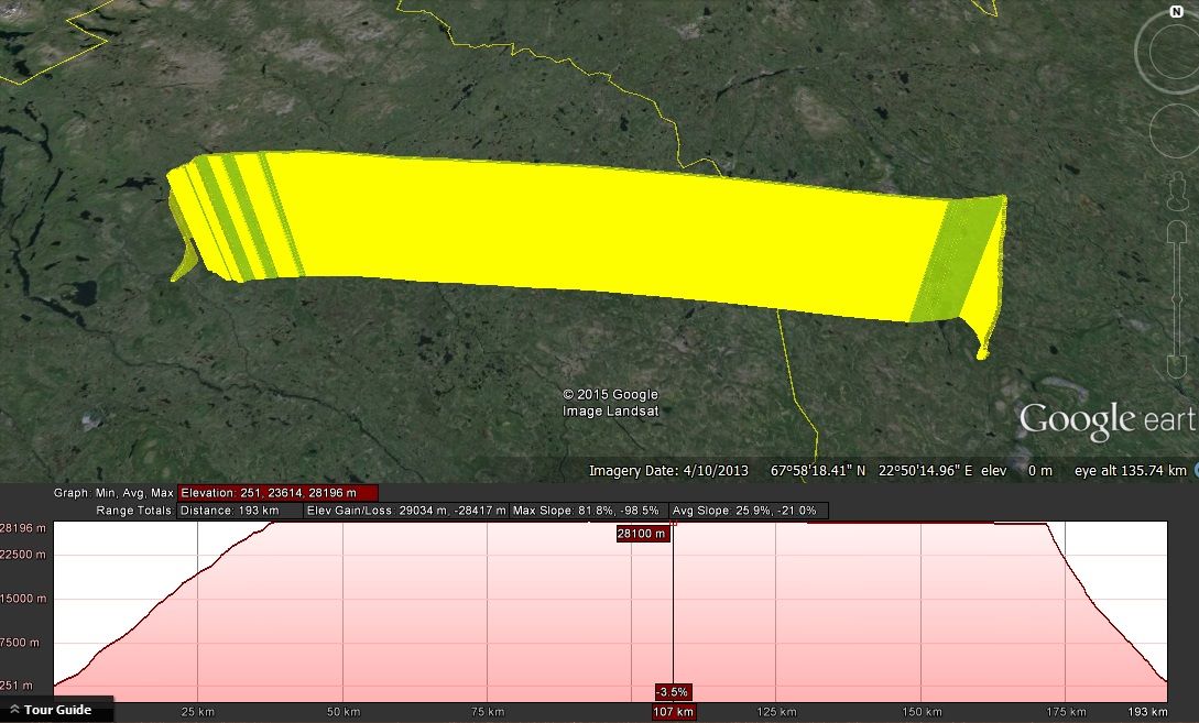 Landing site: In Finland, 25 km E of the Swedish border.
