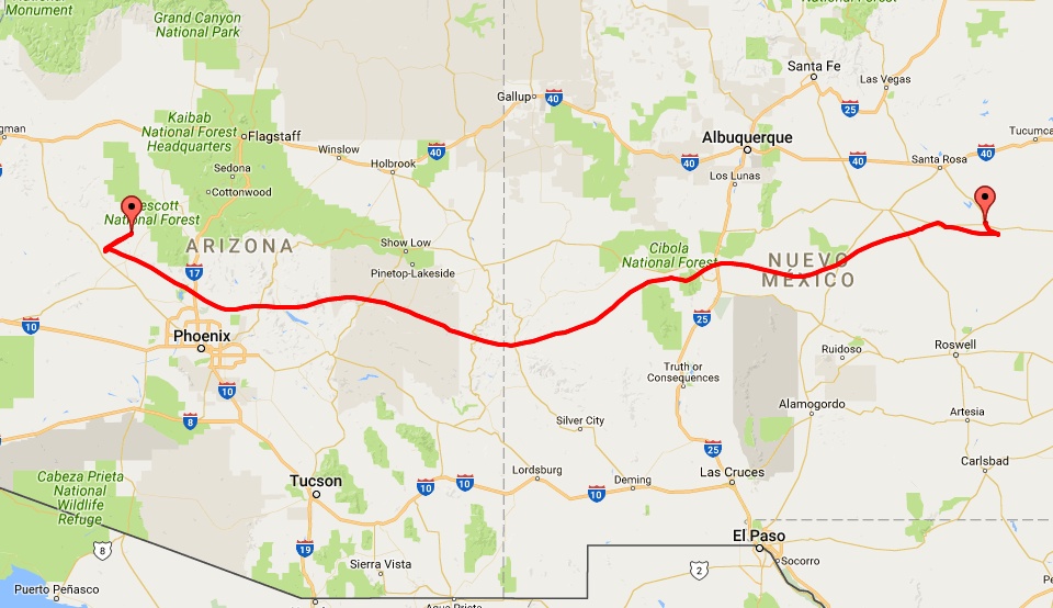 Landing site: 20 miles SW of Prescott, Arizona, US