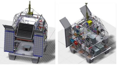 The design of the outer structure is based on the previous experience of the CNES using similar configurations of strong tubes or bars and balls as anchor point. The overall empty weight of the platform structure is near 275 kg and the space to accomodate the payloads is composed of 4 removable trays, which can support a weight of 100 kg, while the mass occupied by a single payload is of up to 400 kg. In addition, the cells that form the exterior walls of the gondola can also accommodate a total of 400 kg of scientific instruments or services gondolas (telemetry, telecommand and so on).