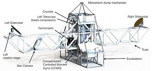 The instrument -which can be seen schematically in the drawing at left- is the first flying "direct detection" interferometer which coherently combines light from two different telescopes to provide increased angular resolution. To provide all this BETTII counts with two collectors 8 meters apart, a cryogenic instrument to capture faint IR radiation, optics with excellent surface quality and a gondola able to withstand large changes in temperature, large pointing errors, and severe shock at landing.