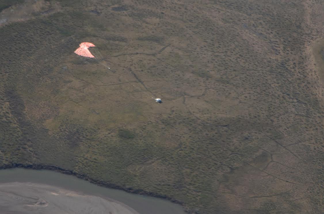 Finally, on June 30, after reaching a suitable zone in the Northwest part of Canada for landing the mission was terminated. The separation command was sent from the Operative Control in Palestine, Texas at 13:53 utc. and the landing occured aproximatelly 45 minutes later near Kugluktuk, in Nunavut territory.