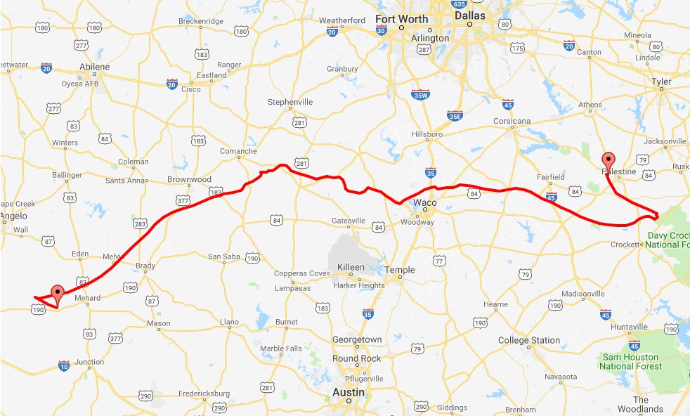 Landing site: 37 nautic miles SE of San Angelo, Texas, US