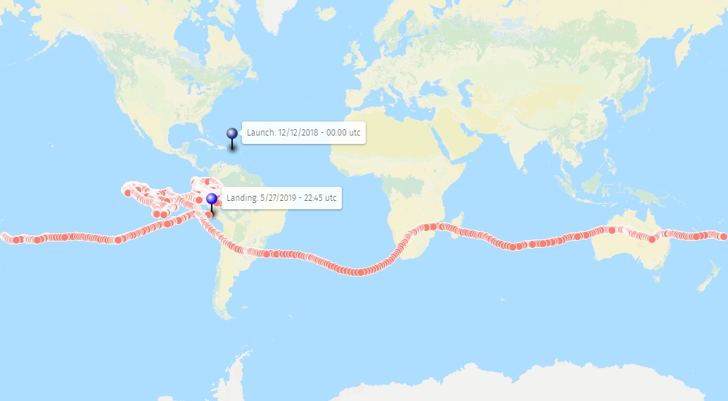 Balloon launched on: 12/12/2018 at ~ 00:00 utc